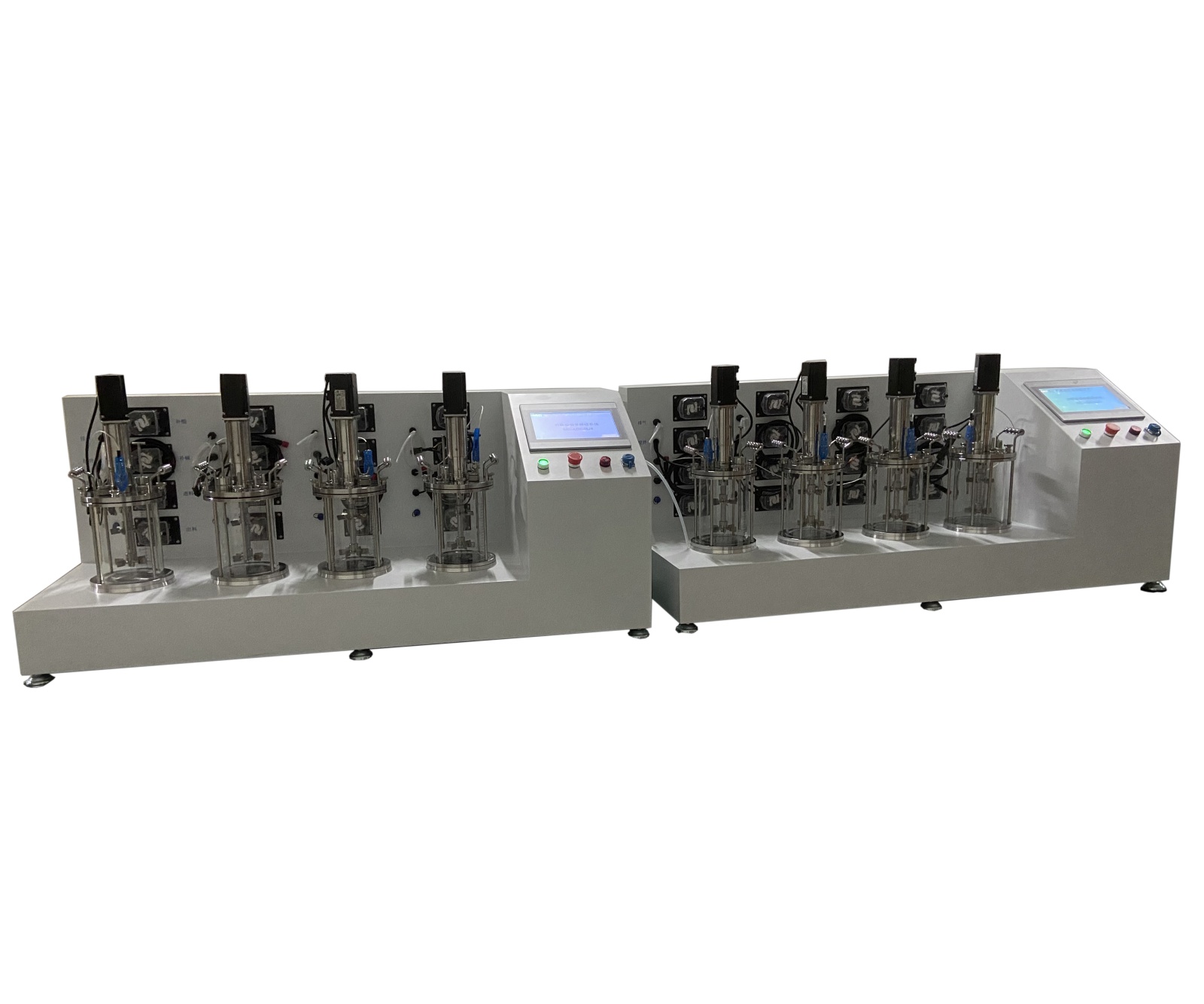 系统由厌氧发酵罐(小罐玻璃罐,大罐不锈钢罐,500ml~100L)、反应过程自动控制监测系统(传感器与一次仪表)、配套系统,是集机械和控制一体化的设备。可以选择下位机控制系统(现场PLC控制系统,二次仪表)触摸屏显示及控制。